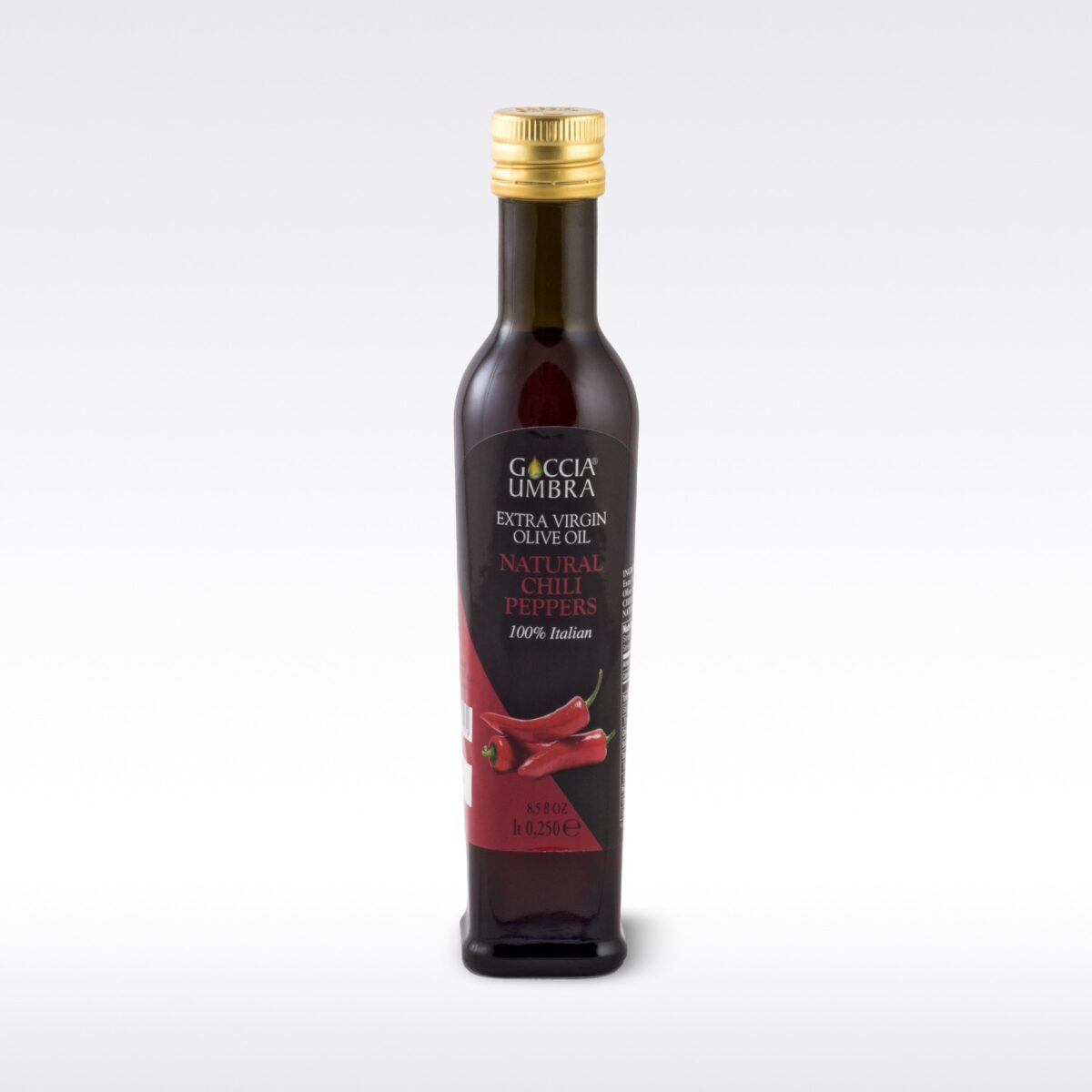 Always used in traditional Italian cuisine, the Goccia Umbra Extra Virgin Olive oil with Chilli Pepper enhances and lights up every dish with its strong and spicy taste!